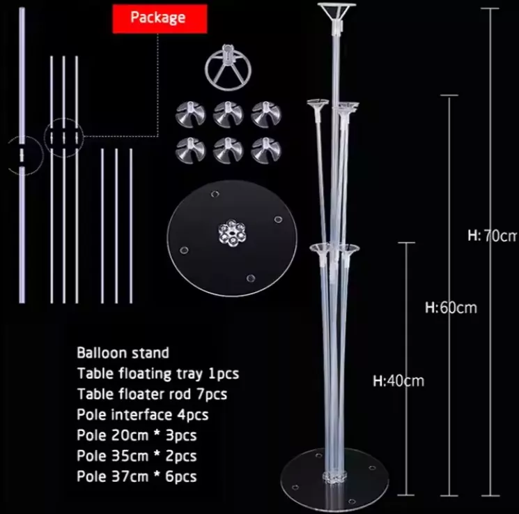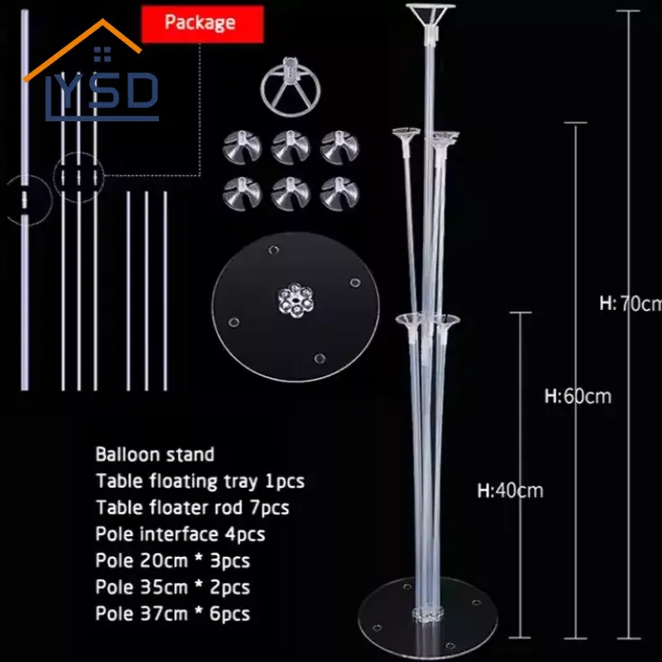 ผู้ถือบอลลูนมักจะโปร่งใส ลูกโป่งซ้อนกันมีแนวโน้มที่จะดูเข้มงวด ผู้ถือบอลลูนโปร่งใสของ YSD ไม่ได้มีความสูงเพียงครั้งเดียว มีความยาวแตกต่างกันในชุดที่วางบอลลูน ตัวอย่างเช่นสิ่งที่ดีที่สุดที่เราขายคือการรวมกันของ 70 ซม., 60 ซม. และ 40 ซม. มีหนึ่ง 70 ซม. 3 60 ซม. และ 3 40 ซม. พวกเขาจะรวมกับลูกโป่งเพื่อให้บอลลูนกระจัดกระจายและเป็นระเบียบ เอฟเฟกต์ "เซ" นี้ทำได้โดยการยืนโปร่งใสเหล่านี้โดยมีความยาวแตกต่างกัน
