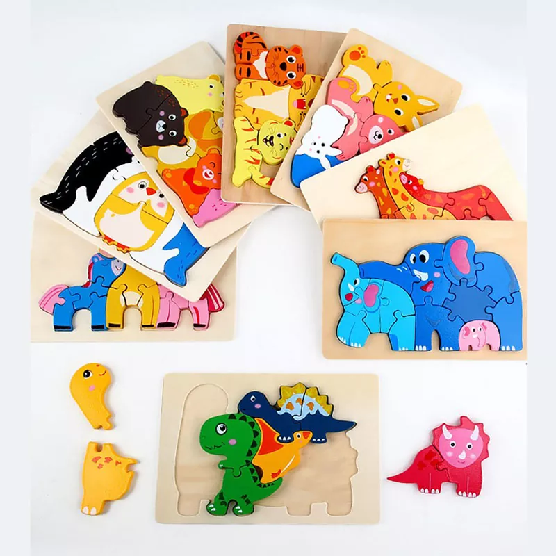 ปริศนาจิ๊กซอว์สัตว์การ์ตูนการศึกษาไม้สำหรับเด็ก