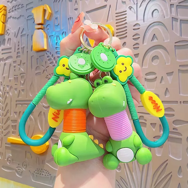เรามีพวงกุญแจไดโนเสาร์สองสไตล์ให้เลือก ทั้งในด้านดีไซน์และวัสดุ เพื่อตอบสนองทั้งผู้ที่ชื่นชอบความรู้สึกที่นุ่มนวลและคลุมเครือ และผู้ที่ชื่นชอบดีไซน์ที่แข็งแรงและทนทาน การออกแบบไดโนเสาร์ที่หรูหรานั้นน่าดึงดูดเป็นพิเศษ ขนทำจากผ้าฟลีซขนสั้นที่มีความหนาแน่นสูง ซึ่งให้สัมผัสเรียบลื่นและไม่หลุดร่วง ตาและเขาสัตว์เป็นงานปัก จึงไม่เหมือนกับการพิมพ์ออฟเซต เพราะจะไม่หลุดง่าย ทำให้ปลอดภัยสำหรับผู้ปกครองที่จะใช้กับลูกๆ ได้ พวงกุญแจทำจากวัสดุโลหะผสมอย่างหนา และทนทานต่อกระบะได้ถึง 5 อัน จึงสามารถเก็บโทรศัพท์ ไดรฟ์ USB หรือกุญแจรถได้โดยไม่ทำให้แตกหัก ทั้งสองสไตล์มีความสูงต่างกันตั้งแต่ 6 ซม. ถึง 15 ซม.