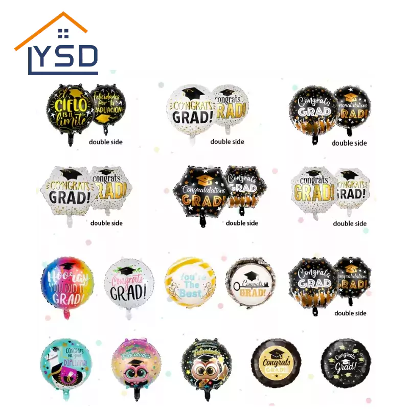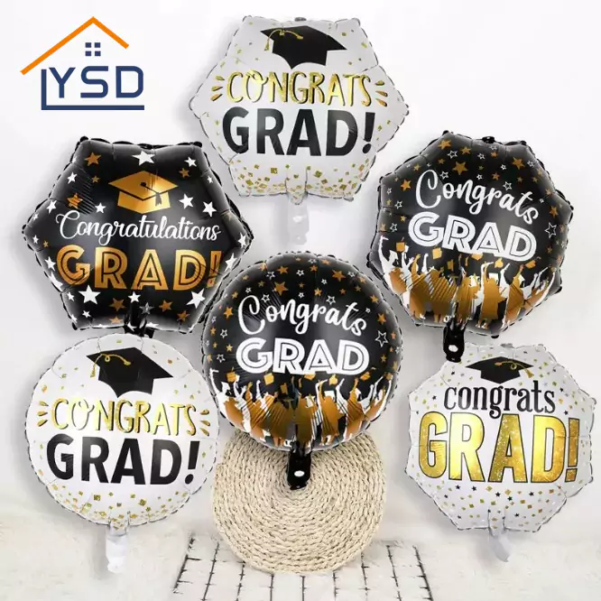 ในการเฉลิมฉลองการสำเร็จการศึกษาต่าง ๆ ลูกโป่งฟอยล์ที่สำเร็จการศึกษาได้กลายเป็นองค์ประกอบการตกแต่งหลักที่ได้รับความนิยมเนื่องจากเอฟเฟกต์ภาพที่สำคัญและความสะดวกในการใช้งาน พวกเขาได้รับการออกแบบมาเพื่อเพิ่มความสุขและความสำคัญที่ระลึกของช่วงเวลาที่สำเร็จการศึกษา ผลิตภัณฑ์นี้มีสีสันสดใสการดำเนินงานที่สะดวกและราคาไม่แพงเป็นข้อได้เปรียบหลักและสนับสนุนตราสัญลักษณ์ของโรงเรียนและคำทักทายที่กำหนดเอง บริษัท YSD เชี่ยวชาญในการผลิตบอลลูนอลูมิเนียมฟอยล์ปาร์ตี้ให้การออกแบบบอลลูนฟอยล์ที่หลากหลายและบริการสั่งซื้อจำนวนมากและเป็นซัพพลายเออร์ที่เชื่อถือได้ของคุณ