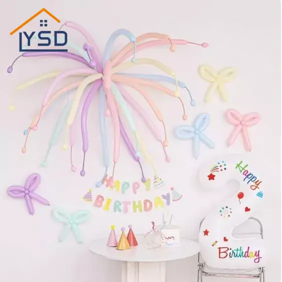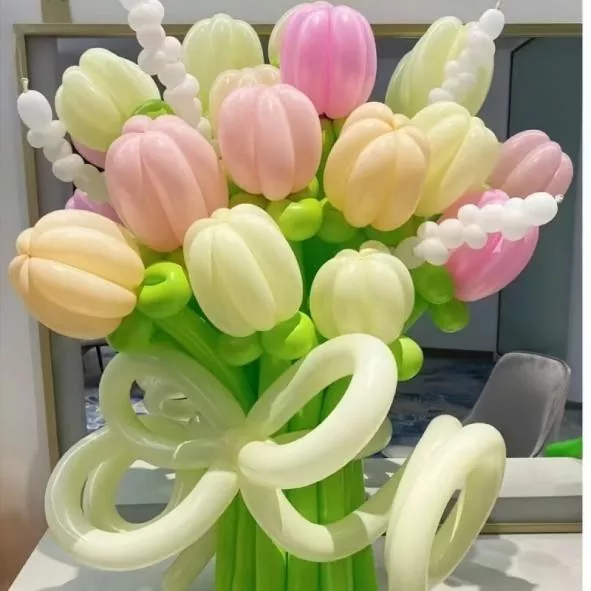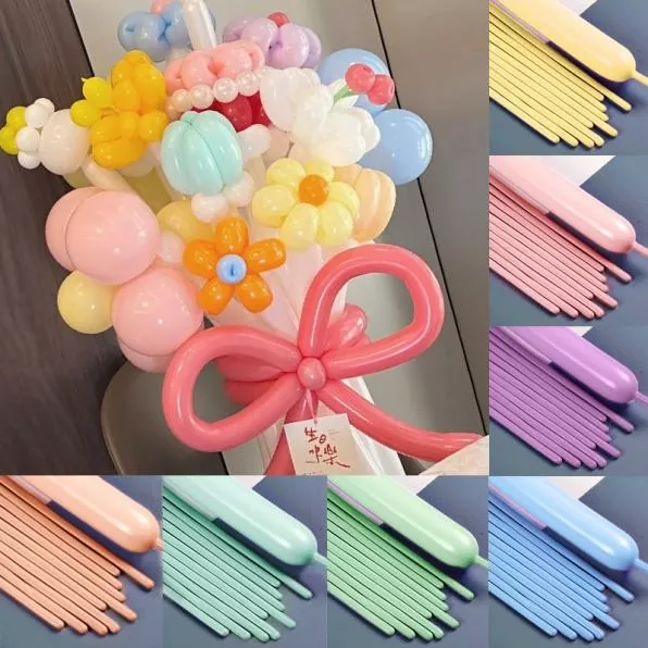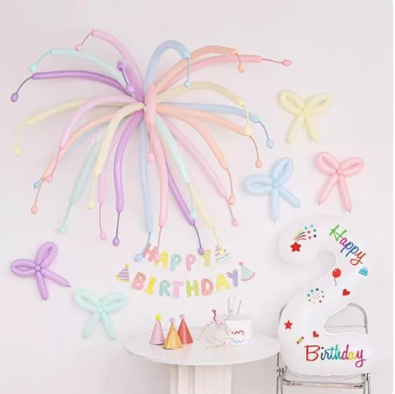 การผสมผสานที่นุ่มนวลของสี Maca แม้แต่การบิดบอลลูนที่เรียบง่ายสามารถนำเสนอบรรยากาศหวานซึ่งเหมาะสำหรับงานวันเกิดหรือการตกแต่งโต๊ะของหวาน! โทนสีอ่อน ๆ และรูปร่างที่เปลี่ยนแปลงตลอดเวลาเพิ่มความหวานและความสนุกสนานแบบไร้เดียงสา!
